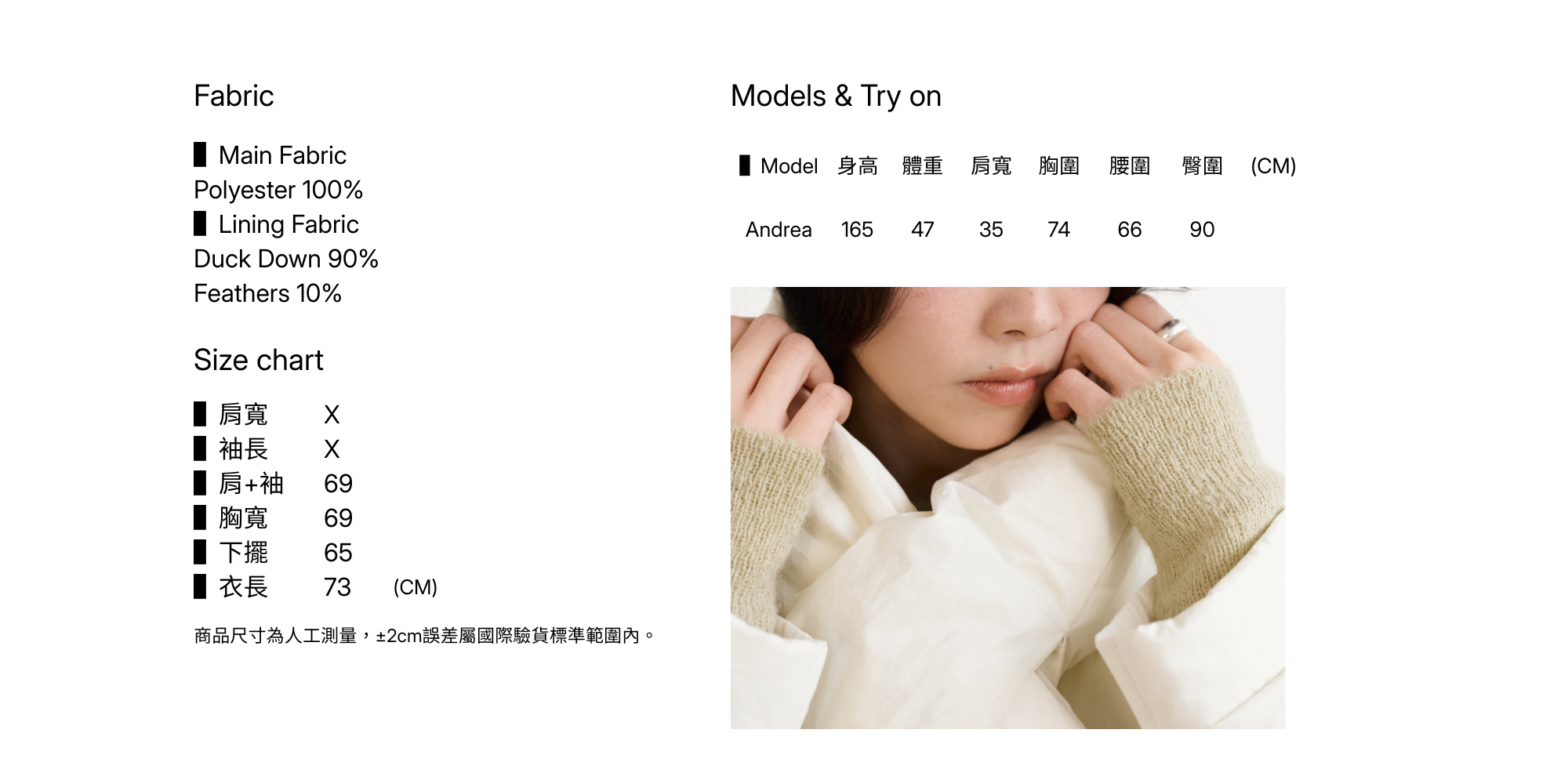 ▌ 90%鴨絨 保暖度佳但不笨重