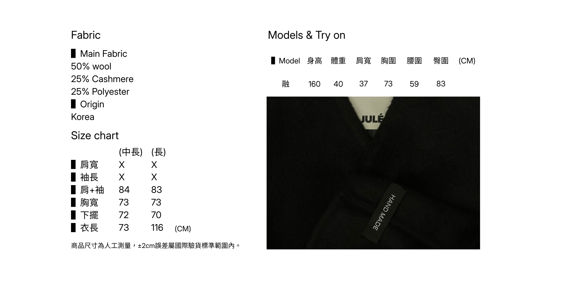 這款外套採用 50% 羊毛+25% 羊絨 的混紡比例,